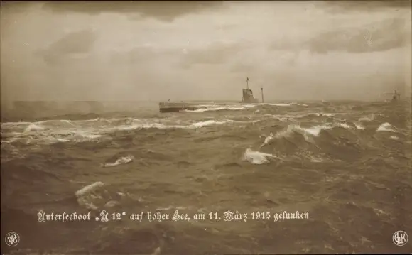 Ak Deutsches U Boot, Unterseeboot, U 12 auf hoher See, Gesunken 11 März 1915