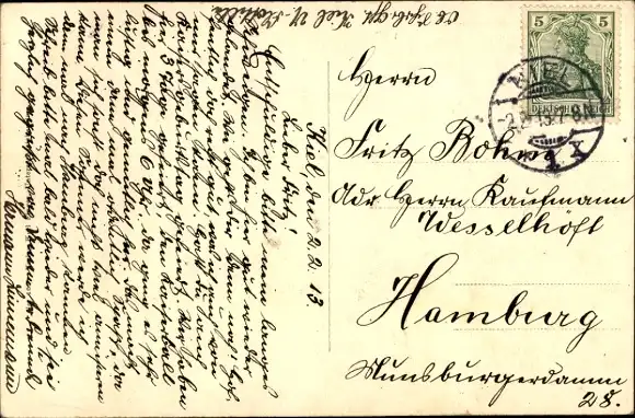 Zustand, siehe Scan, gelaufen, 1913 - ca 14 cm X 9 cm