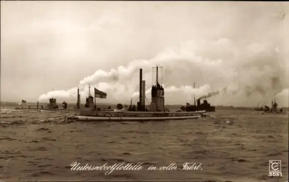 Ak Deutsches U Boot, Unterseebootflottille in voller Fahrt, U 9