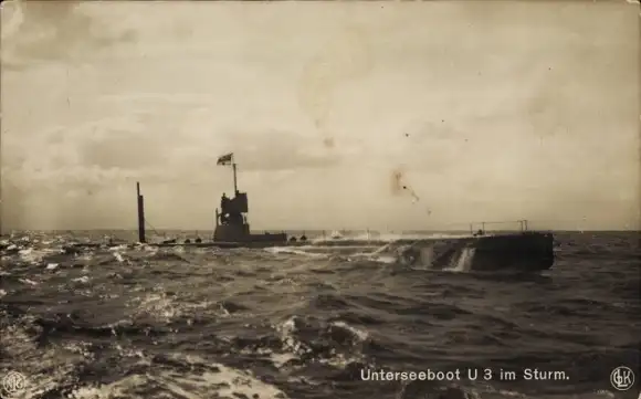 Ak Deutsches Unterseeboot, U-Boot U 3 im Sturm