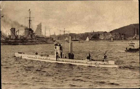 Ak Deutsches Unterseeboot, U-Boot U 8, Kaiserliche Marine, britischer Schlachtkreuzer