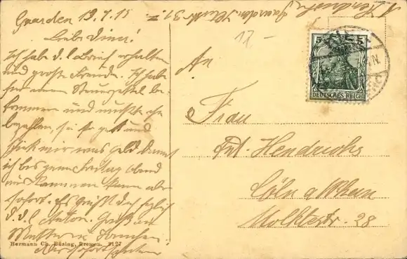 Zustand, siehe Scan, gelaufen, 1915 - ca 14 cm X 9 cm