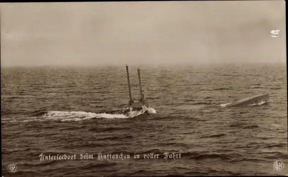 Ak Deutsches Unterseeboot, U-Boot beim Auftauchen in voller Fahrt, Kaiserliche Marine, NPG, GLK