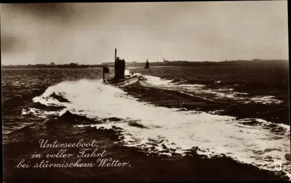 Ak Deutsches Unterseeboot, U-Boot in voller Fahrt bei stürmischem Wetter