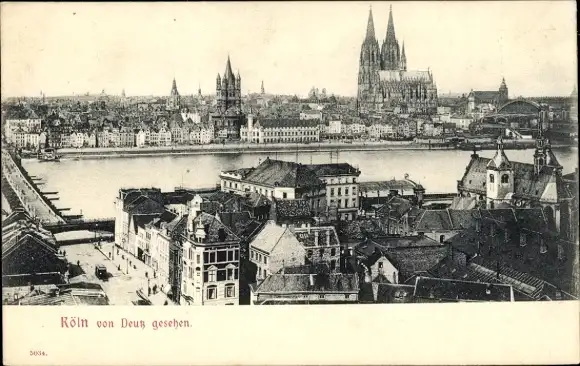 Ak Deutz Köln am Rhein, Teilansicht Blick von Deutz aus, Dom, Rhein
