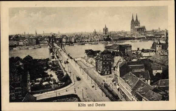 Ak Deutz Köln am Rhein, Teilansicht, Rhein, Dom