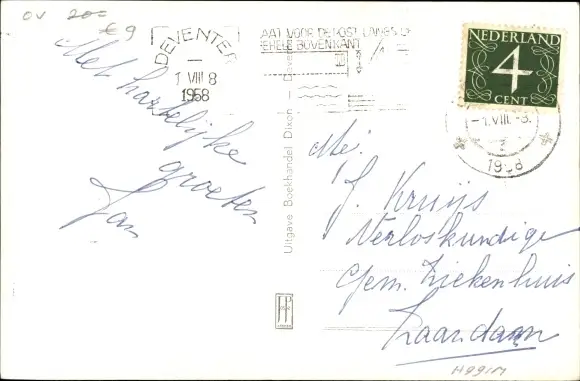 Zustand, siehe Scan, gelaufen, 1958 - ca 14 cm X 9 cm