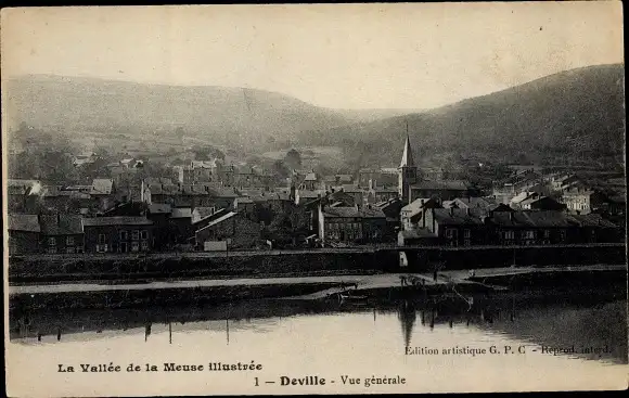 Ak Deville Ardennes, vue générale de la ville, La Vallée de la Meuse