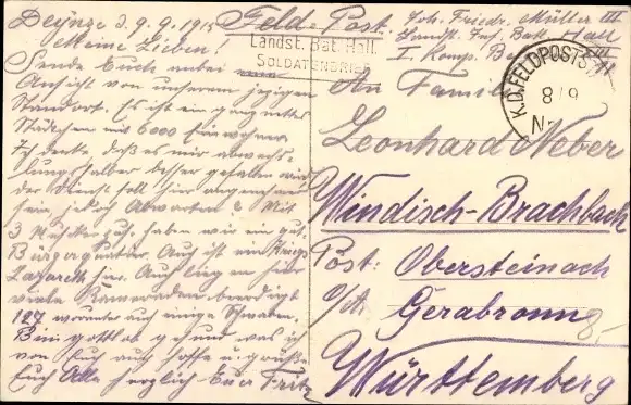 Zustand, siehe Scan, gelaufen, 1915 - ca 14 cm X 9 cm