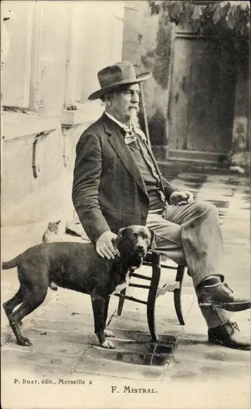 Ak Dichter Frédéric Mistral, Portrait, Hund