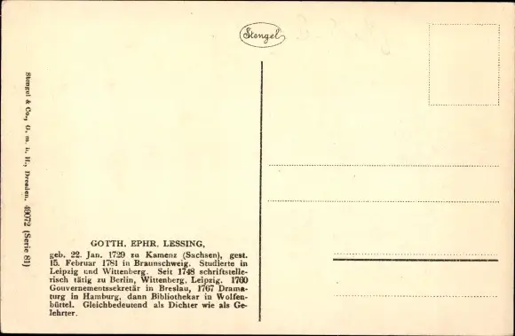 Ak Dichter Gotthold Ephraim Lessing, Portrait