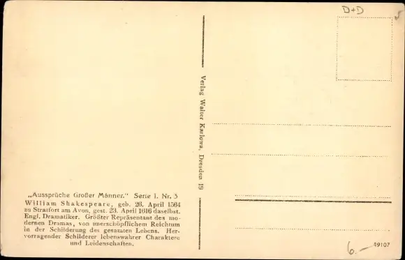 Ak Dichter William Shakespeare, Portrait, Aussprüche großer Männer I 3