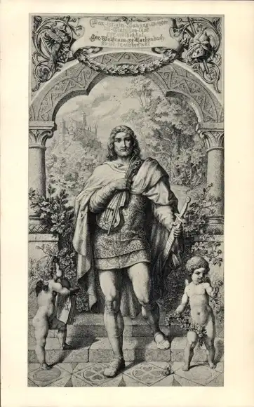 Ak Dichter Wolfram von Eschenbach, Portrait, Engel, Geige