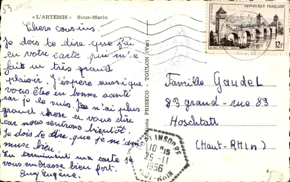 Zustand, siehe Scan, gelaufen, 1956 - ca 14 cm X 9 cm