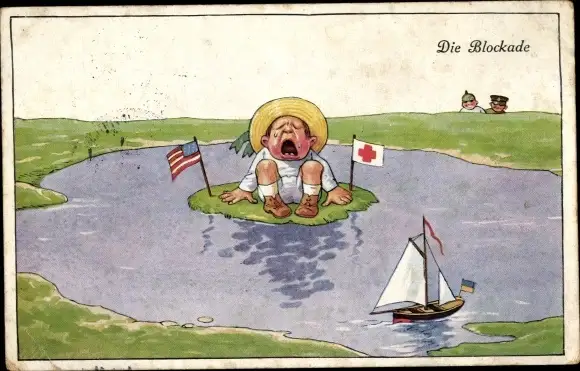 Ak Die Blockade, I.WK, Weinendes Kind, Propaganda, Humor, Kaiserreich, USA