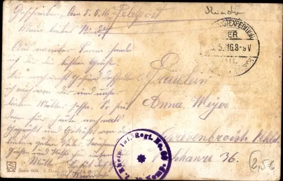Zustand, siehe Scan, gelaufen, 1916 - ca 14 cm X 9 cm