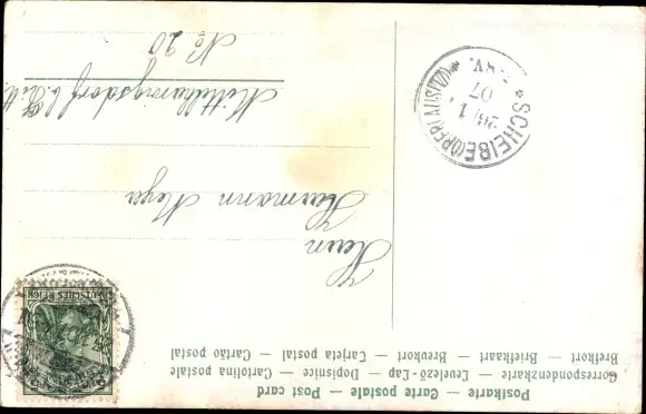 Zustand, siehe Scan, gelaufen, 1907 - ca 9 cm X 14 cm