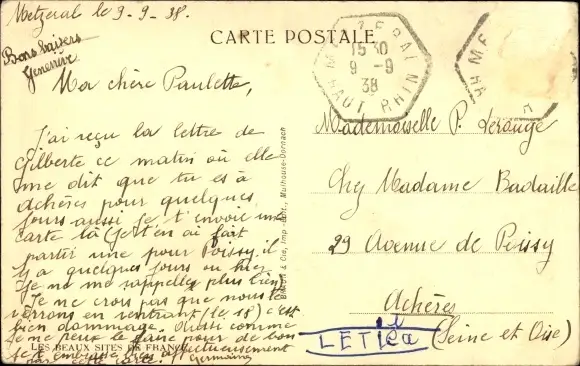 Zustand, siehe Scan, gelaufen, 1938 - ca 14 cm X 9 cm