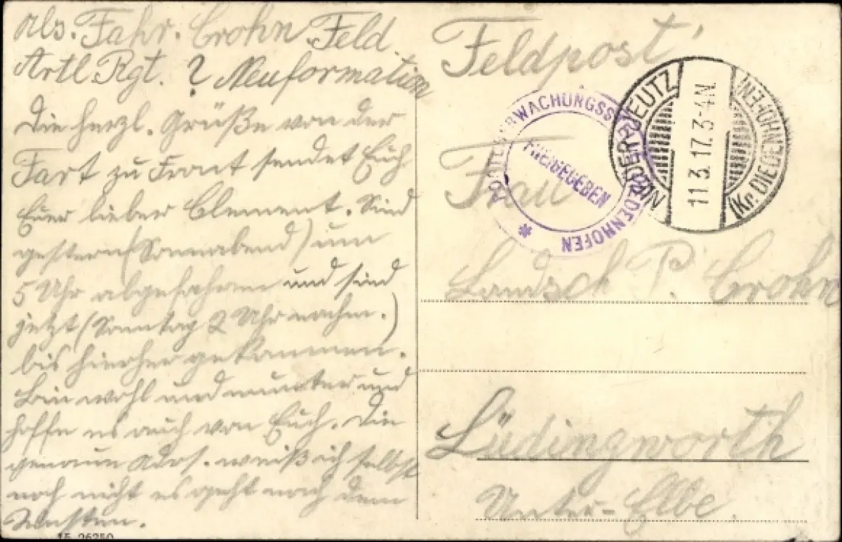 Zustand, siehe Scan, gelaufen, 1917 - ca 14 cm X 9 cm