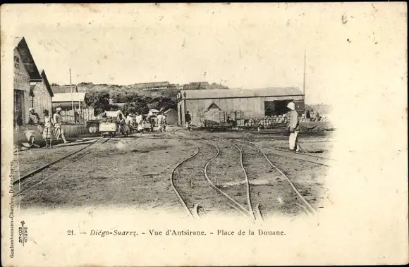 Ak Diego Suarez Madagaskar, Vue d'Antsirane, Place de la Douane