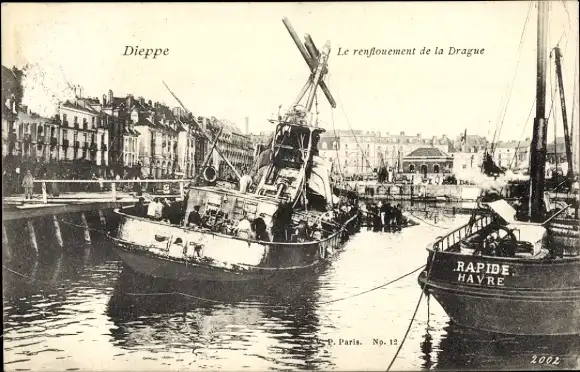 Ak Dieppe Seine-Maritime, Die Wiederflottmachung der Dredge
