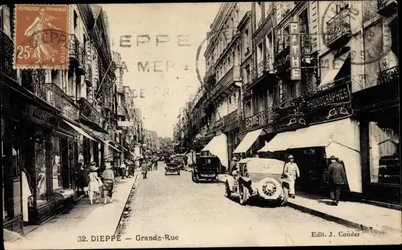Ak Dieppe Seine Maritime, Grande Rue, Autos, Geschäfte