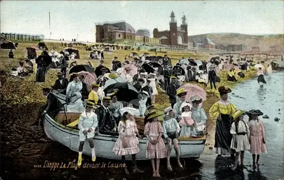 Ak Dieppe Seine Maritime, La Plage devant le Casino
