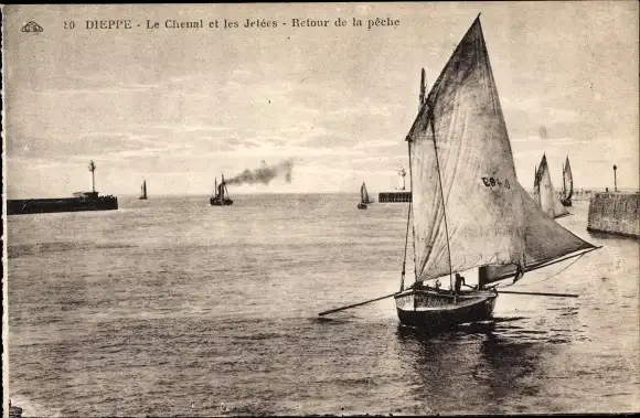 Ak Dieppe Seine Maritime, Le Chenal et les Jetees, Fischerboote