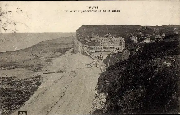 Ak Dieppe Seine Maritime, Puys, Panoramablick, Strand