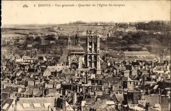 Ak Dieppe Seine Maritime, Vue générale, Quartier de l'Eglise St Jacques