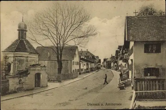 Ak Dießen am Ammersee, Straßenpartie, Kapelle