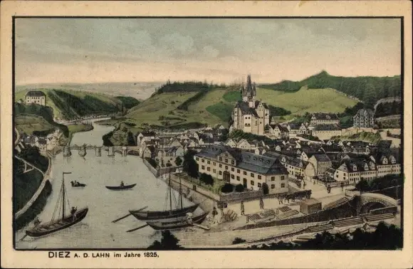 Ak Diez an der Lahn, Gesamtansicht im Jahr 1825
