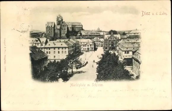 Ak Diez an der Lahn, Marktplatz mit Schloss