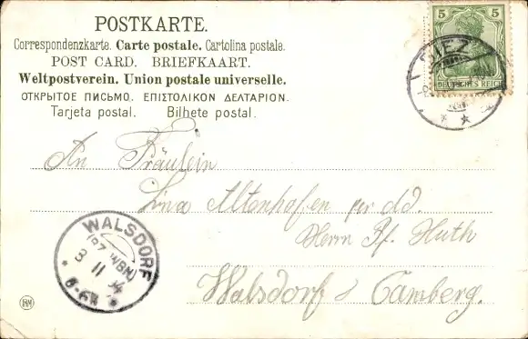 Zustand, siehe Scan, gelaufen, 1904 - ca 14 cm X 9 cm