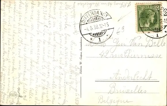 Zustand, siehe Scan, gelaufen, 1938 - ca 14 cm X 9 cm