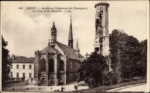 Ak Dijon Côte d'Or, Ancienne Chartreuse de Champmol, Turm, Kapelle