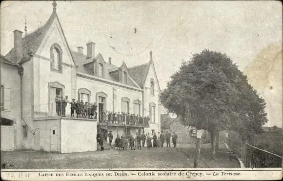 Ak Dijon Côte d'Or, Schulkolonie Crepey, die Terrasse