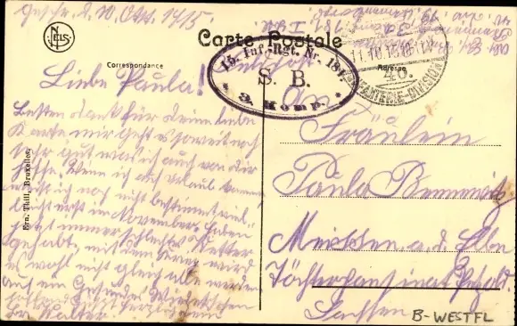 Zustand, siehe Scan, gelaufen, 1915 - ca 14 cm X 9 cm