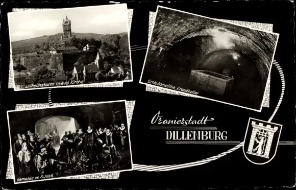 Ak Dillenburg in Hessen, Wilhelmsturm, Gemälde, Schloss, Keller, Wappen