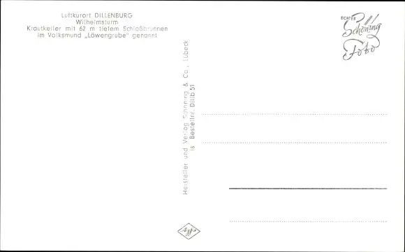 Ak Dillenburg in Hessen, Wilhelmsturm, Krautkeller, Schlossbrunnen, Löwengrube