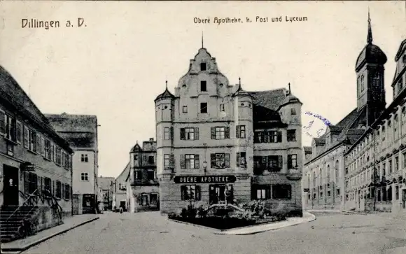 Ak Dillingen an der Donau, Obere Apotheke, Kaiserliche Post, Lyzeum