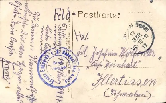 Zustand, siehe Scan, gelaufen 1917 - ca 14 cm X 9 cm
