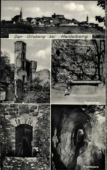Ak Dilsberg Neckargemünd am Neckar, Panorama, Burgbrunnen, Brunnengang, Burgruine