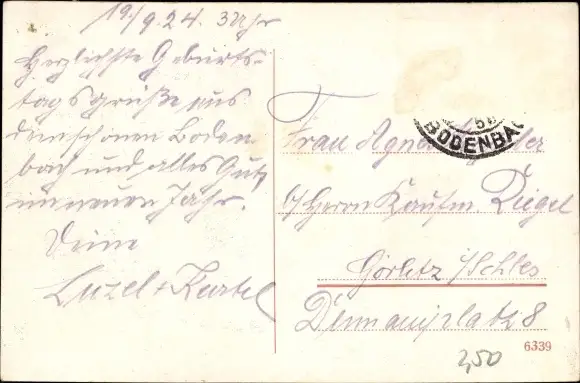 Zustand, siehe Scan, gelaufen, 1924 - ca 14 cm X 9 cm