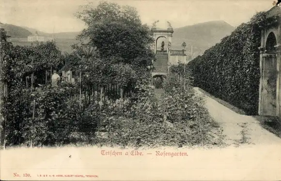 Ak Děčín Tetschen an der Elbe Region Aussig, Rosengarten