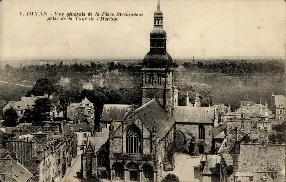 Ak Dinan Côtes-d’Armor, Place St-Sauveur prise de la Tour de l'Horloge