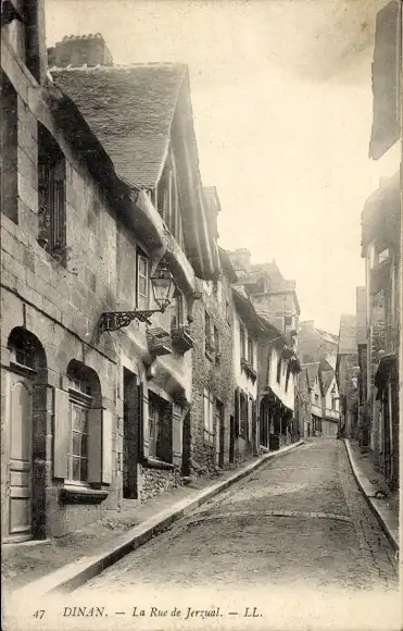 Ak Dinan Côtes d'Armor, vue générale de la Rue de Jerzual
