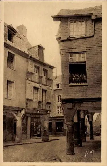 Ak Dinan Côtes d'Armor, vue générale des Vieilles Maisons de la Rue de l'Apport