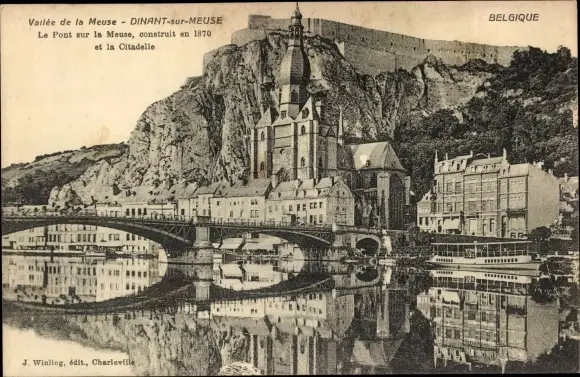 Ak Dinant Wallonien Namur, Vallee de la Meuse, Le Pont sur la Meuse, construit en 1870 et la citad.