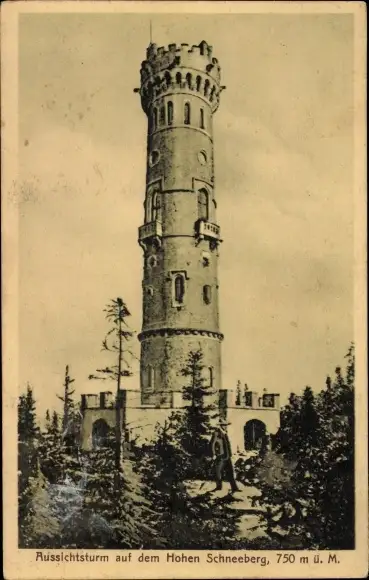 Ak Děčínský Sněžník Hoher Schneeberg Region Aussig, Aussichtsturm